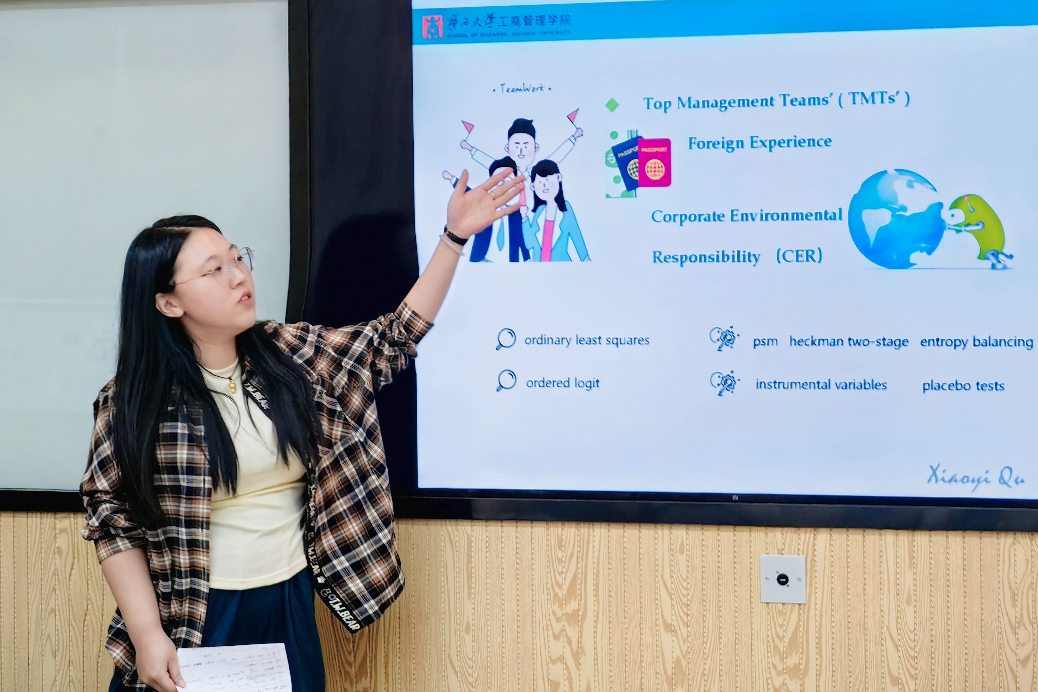 曾任研究生第二党支部副书记、工商管理学院兼职辅导员。在校期间获评广西大学优秀共产党员、学业奖学金二等奖、中国国际大学生创新大赛广西区级金奖及广西大学优秀兼职辅导员等荣誉。