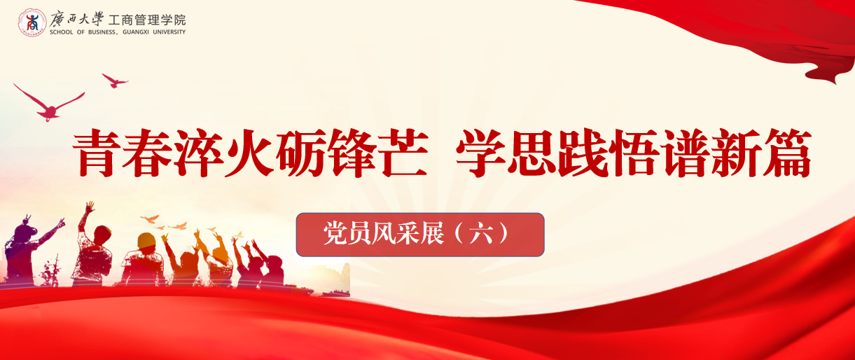 曾任工商管理211班学习委员、学院党建秘书处副秘书长、本科生第三党支部支委助理及宣传委员。曾获广西大学“优秀学生干部”“优秀学生”,广西大学工商管理学院“优秀党务工作者”等称号。