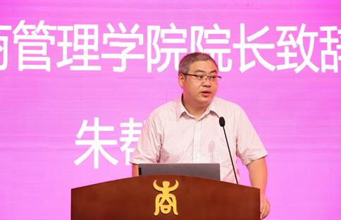 朱帮助院长代表学院党政领导班子和全体教职工致欢迎辞,对2023级EMBA新生的到来表示热烈欢迎。他向新生们简要介绍了学院的基本情况,在同学们即将开启EMBA学习之际,朱帮助院长寄语同学们:一要善于学习,掌握管理真谛;二是勇担责任,实现人生价值。祝愿同学们学有所成、学有所获。