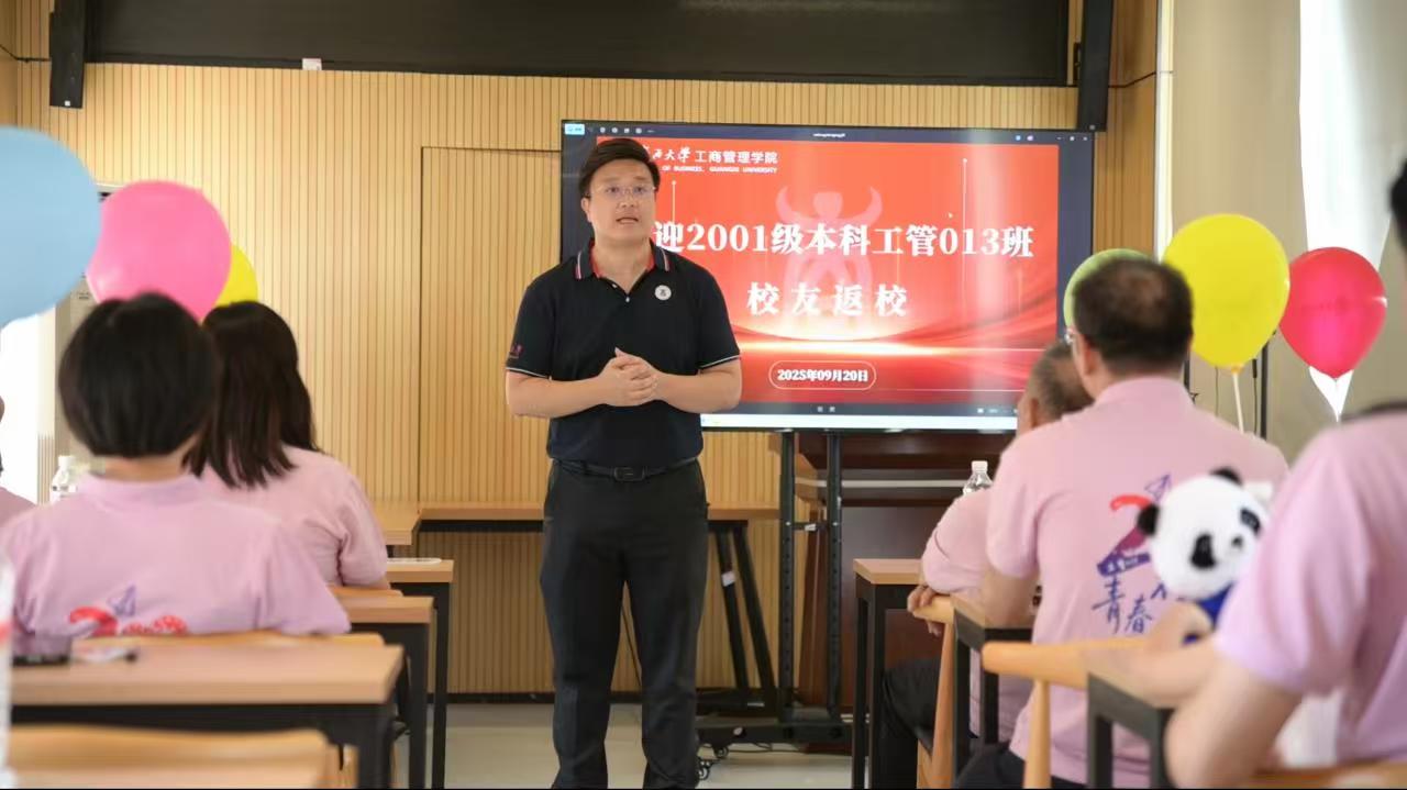 一别廿载,今朝终聚;同窗情浓,岁月未改。2025年9月20日,广西大学工商管理学院2001级工管013班近30名校友怀揣思念重返母校,共赴这场跨越二十年的青春之约,圆满举办毕业20周年返校活动。大家身着统一班服,或漫步于熟悉的校园小径,或围坐于曾经的教室,在满溢的温情中共叙青春往事,见证母校与学院的蓬勃发展。