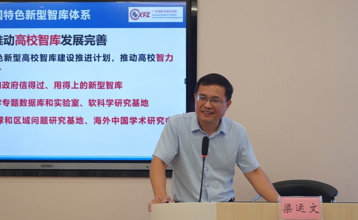 9月26日下午,广西创新发展研究院执行院长梁运文教授在我院122报告厅为师生们带来一场题为“学术与智库研究贯通的经验和路径”的学术报告。本次讲坛由学院副院长刘民坤教授主持。