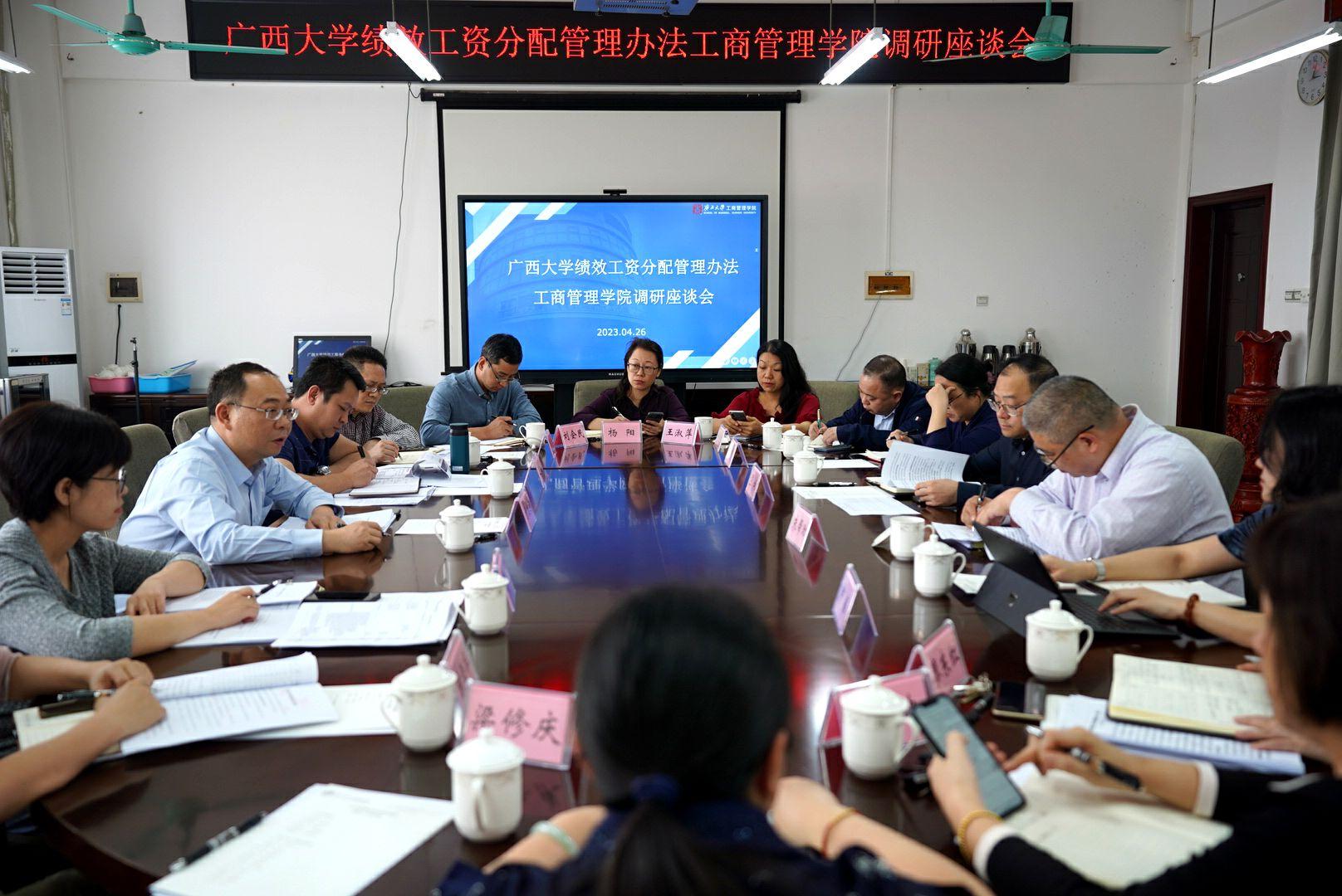 为进一步深化我校绩效管理改革,充分听取和采纳二级学院职工意见建议,4月26日下午,学校人力资源处处长于文进带领副处长周海斌、吴彤,薪酬管理岗张华胜、聘用考核岗陈雪华一行5人走进工商管理学院,就新修订的绩效工资分配管理办法征求意见,开展座谈交流。我院党委书记罗诚、院长朱帮助、副院长朱少英、申韬、刘民坤、廖东红,工会主席叶映和部分教代会代表参加了座谈会。