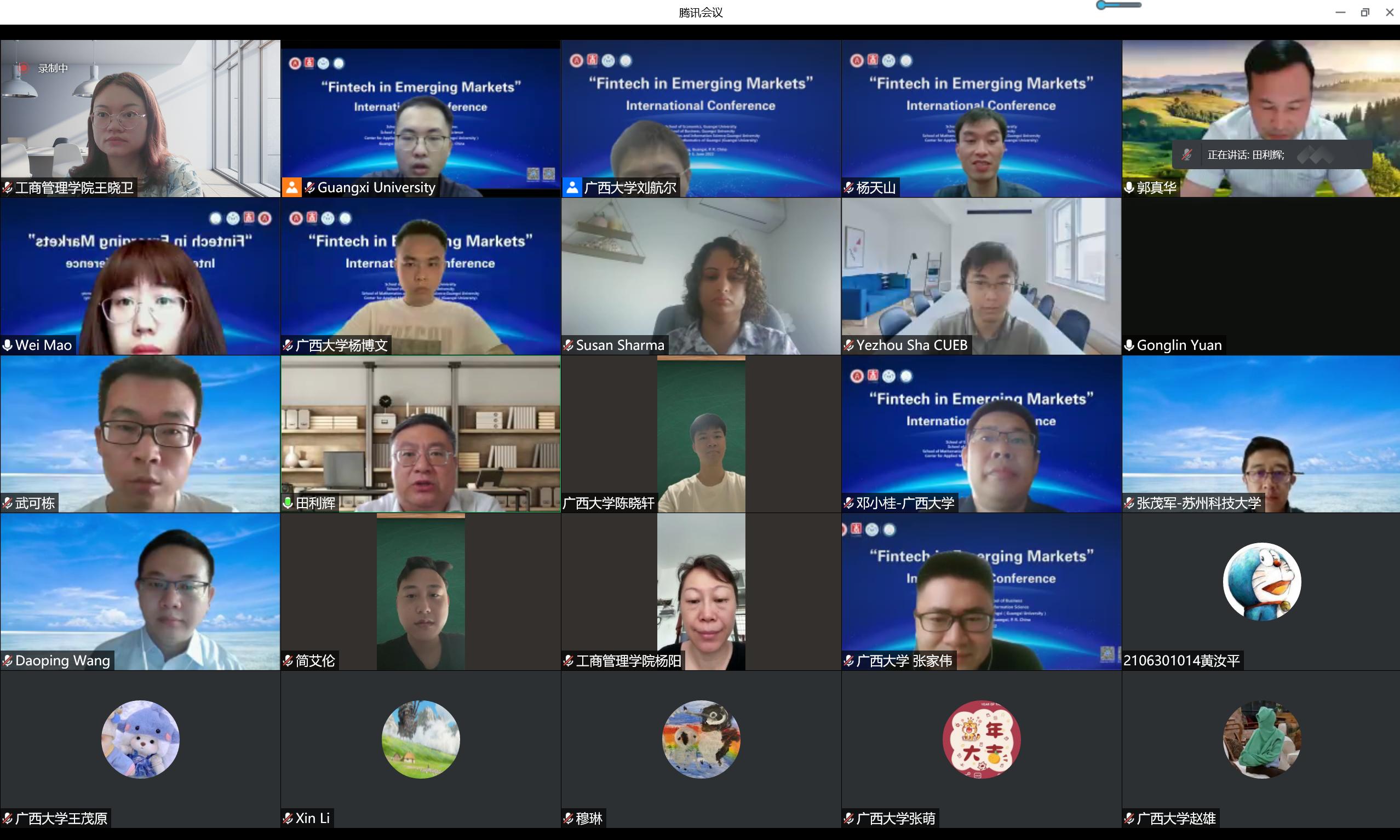 6月3日至5日,由我院与经济学院/中国—东盟金融合作学院、数学与信息科学学院联合承办的亚太应用经济协会(Asia-Pacific Applied Economics Association)第六届国际金融会议通过腾讯会议平台在线上成功举办。会议主题为“新兴市场国家的金融科技”,校党委常委、副校长田利辉出席会议开幕式并致辞,数学与信息科学学院学术院长郭真华主持开幕式,国内外相关高校近百名师生参会。